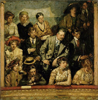 Een schilderij dat knap in opbouw is, van een ongewone hoek 'genomen' en dat je nieuwsgierig maakt naar waar men naar zit te kijken. Met dit schilderij trok hij nationaal en internationaal de aandacht. Zijn theaterloges waren daar een vervolg op.
